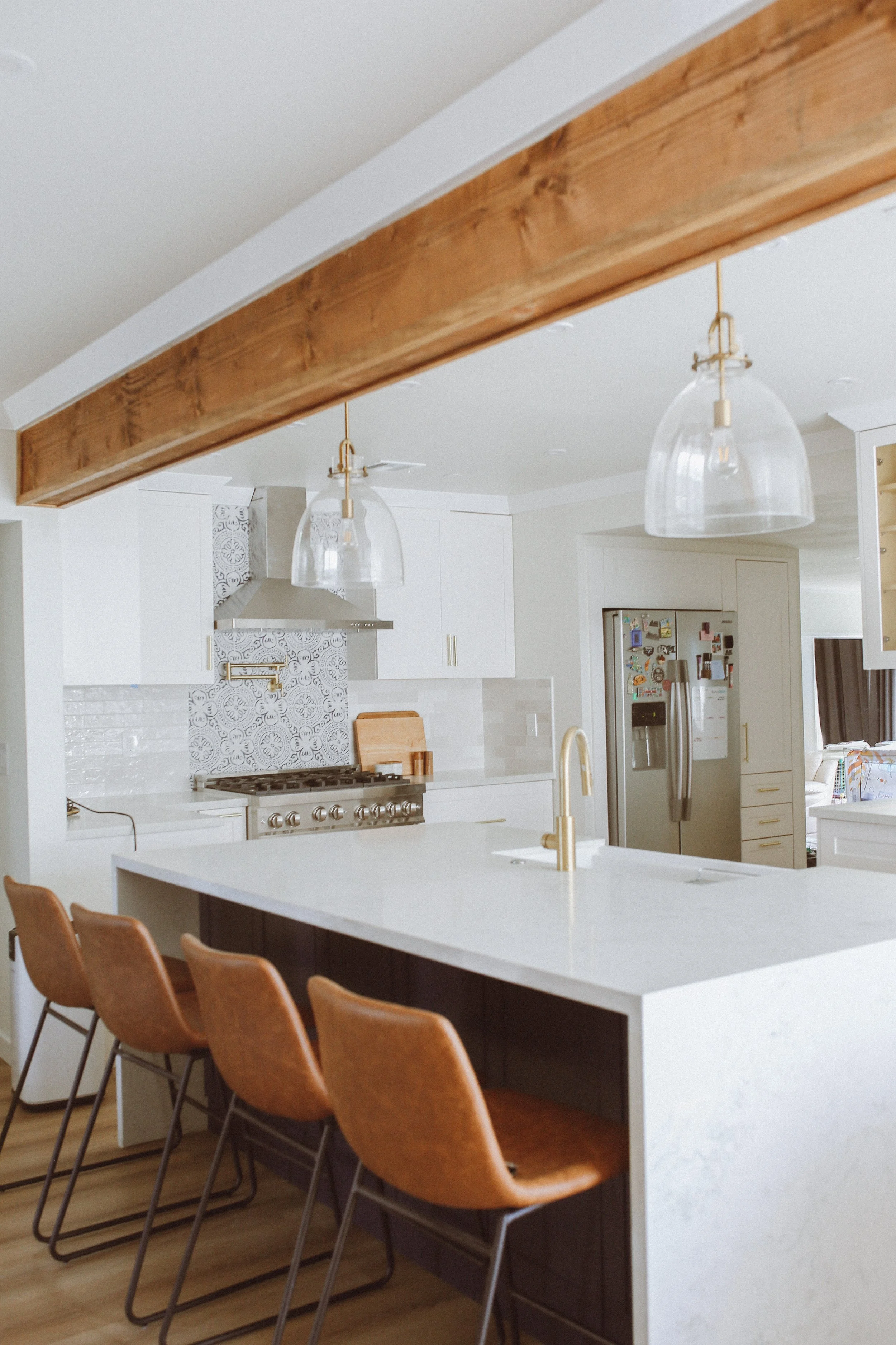 This home is in the heart of the San Gabriel Valley. This family of 4 wanted a kitchen that was functional and accommodating, yet beautiful. They wanted to entertain their guest while also mainitaining a low maintance kitchen that could survive a growing family of working parents and 2 young boys. This san gabriel valley kitchen is filled with soft neutrals and wood tones. With zellige tile backsplash, subtle carrera quartz, and golden oak accents this kitchen welcomes any guest who walks through the door.